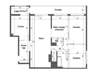 En parfait état, respectant les dernières normes environnementales et énergétiques, il ne vous restera qu'à décorer et aménager la cuisine pour poser vos valises. L'appartement se compose d'une pièce à vivre de 29m², de deux chambres, d'une salle de bain et d'un WC séparé. Le séjour donne accès à une loggia exposé sud-est.